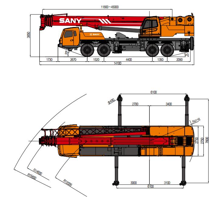 Sany STC750 truck crane adopts load feedback and constant power control technology that is designed to provide strong lifting capacity and good micro-mobility. Unique steering buffer ensures the stable braking operation. Powerful Lifting Ca...