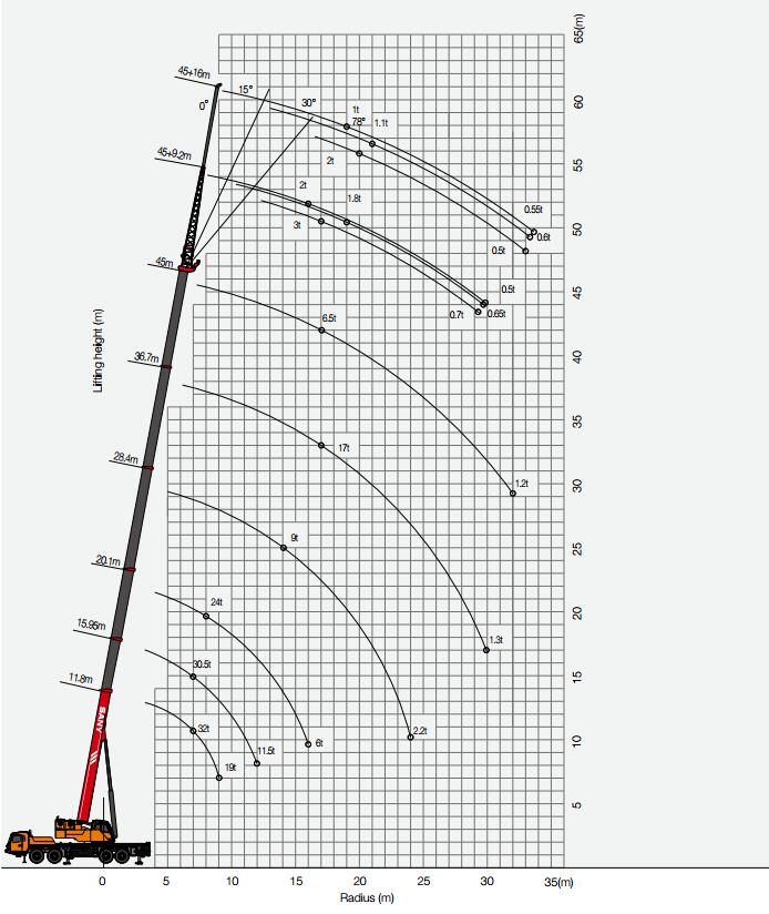 | Jib offset | 0 ° 15 ° 30 ° | |