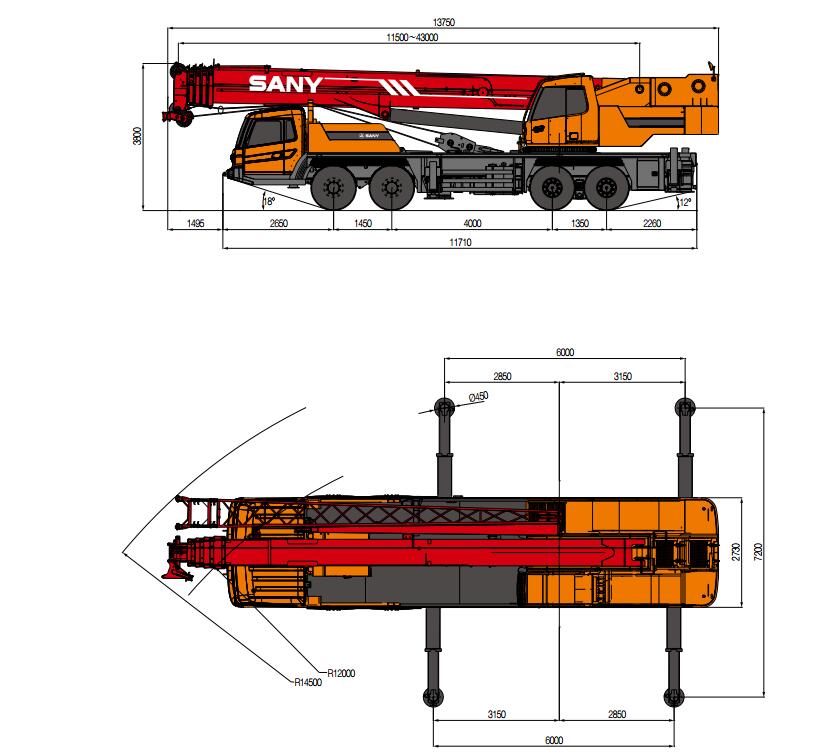 | Min.turning radius of boom head | 14.5m | |
